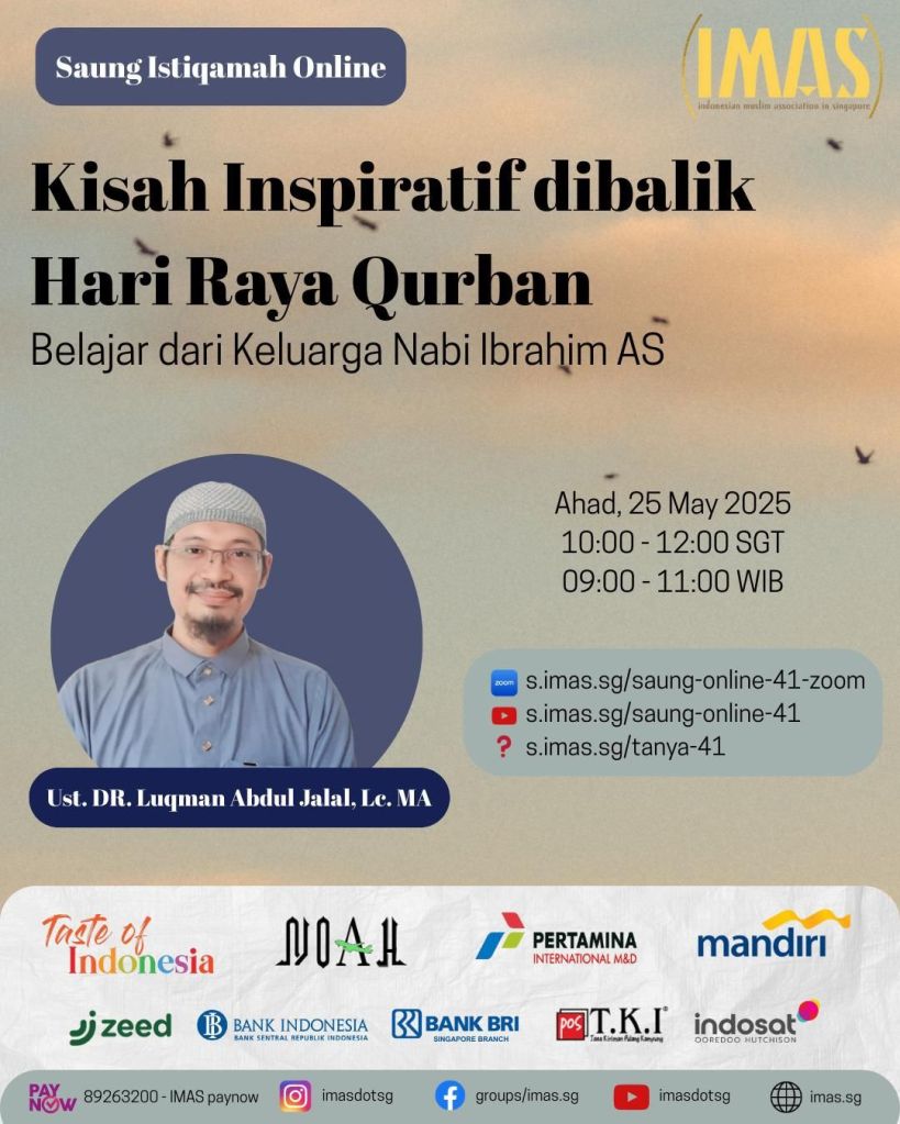 Dilaksanakan muslimah IMAS pada 16 April 2025 offline di Gedung PKMS Singapura.
