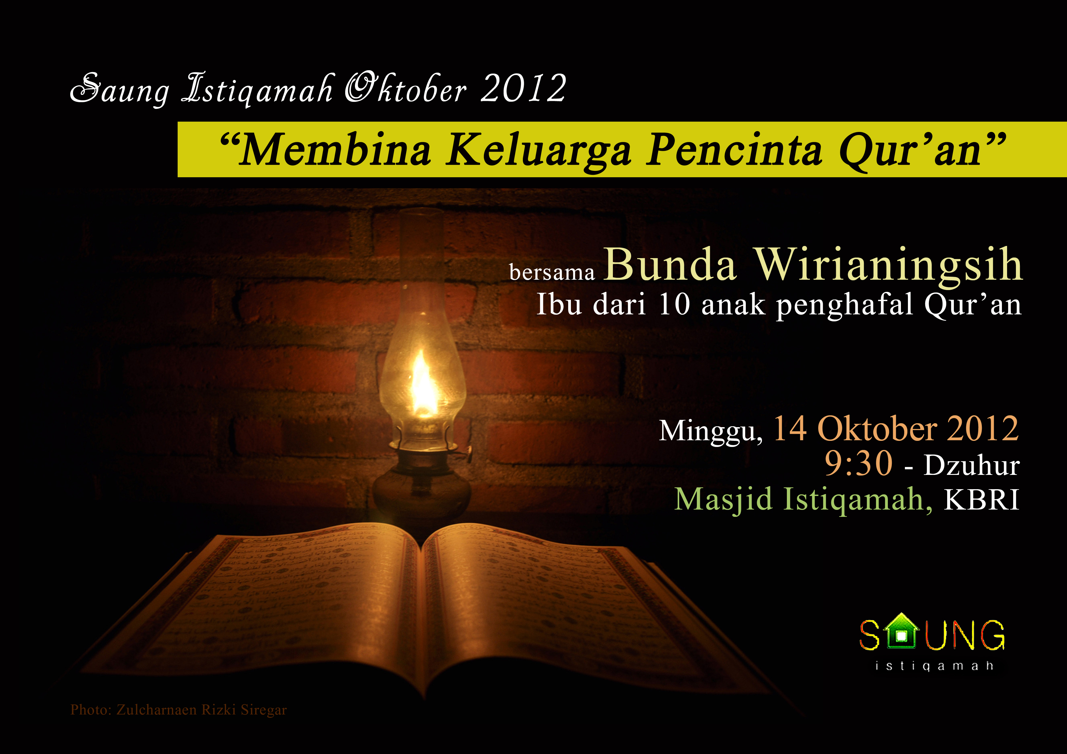 Program favorit kita, Saung Istiqomah Insya Allah akan hadir kembali dan akan diisi oleh Bunda Wirianingsih dengan tema “Membina Keluarga Pencinta Al Qur’an”.