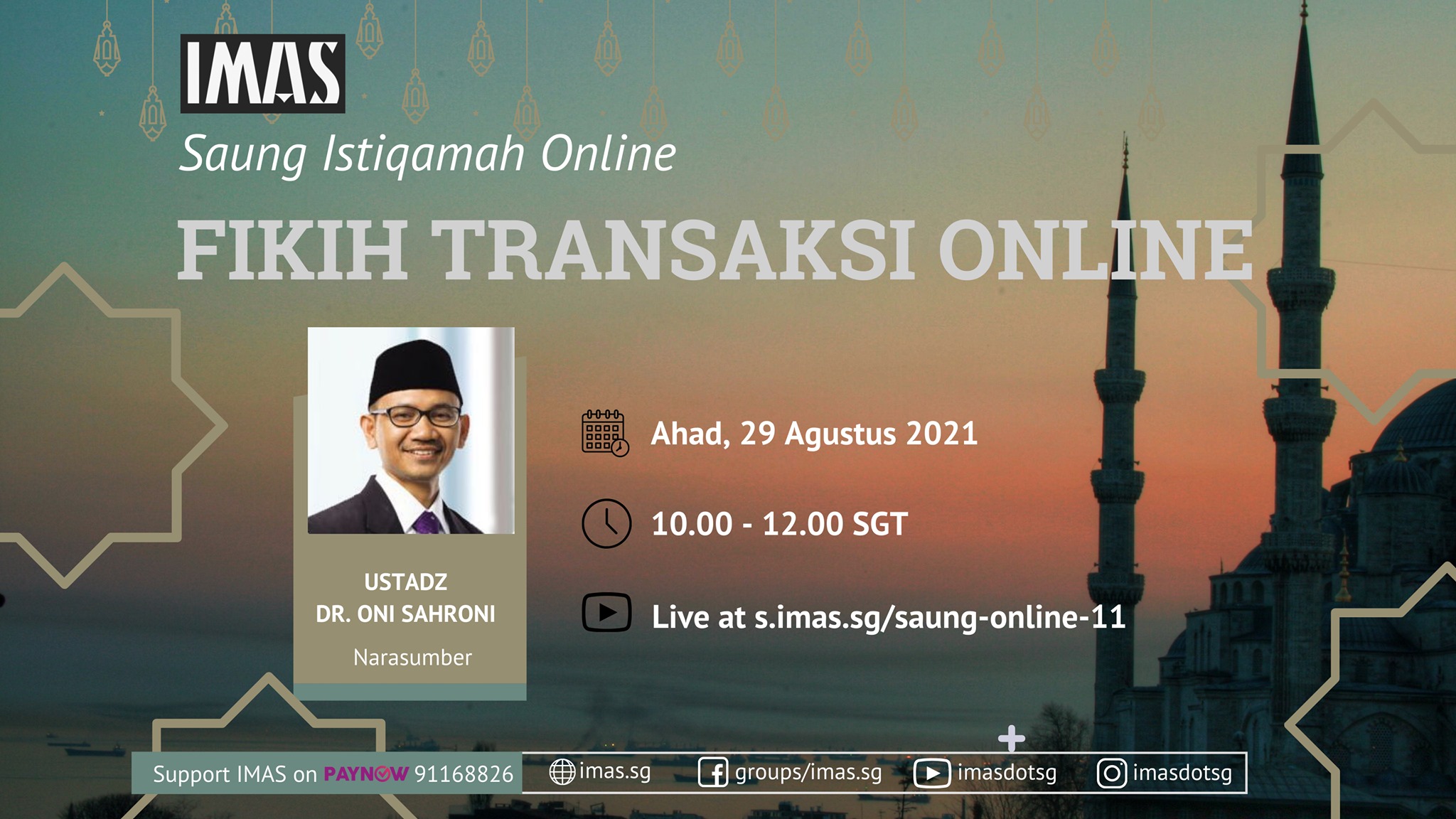 Rekan-rekan IMAS yang dirahmati Allah, kajian saung online IMAS bulan ini Insya Allah kembali hadir pada:
