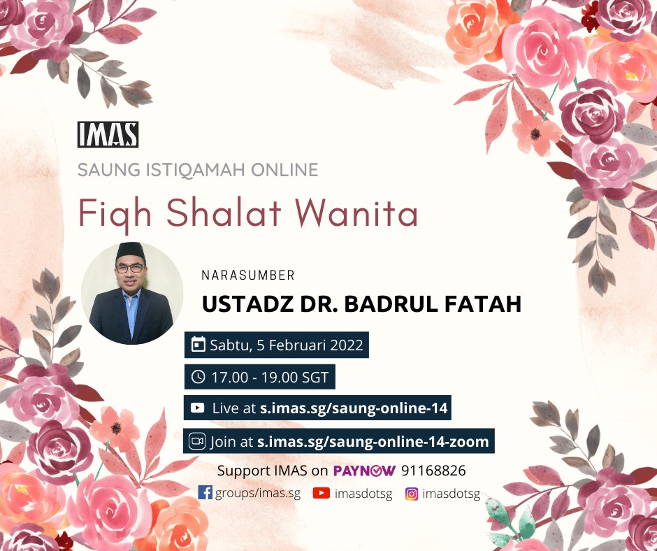 Pada kesempatan ini ustadz Dr. Badrul Fata Muhd Ridwan (Institut Pengajian Tinggi al-Zuhri Singapura) akan membawakan tema fiqh seputar shalat wanita. Isu-isu klasik seperti menegakkan shalat fardhu di tengah kesibukan di rumah sebagai pekerja domestik atau ibu dengan banyak anak kecil, mensiasati shalat di tempat non-muslim atau tempat umum di Singapura, apakah pakaian atau tempat yang sah untuk shalat, bagaimana batasan aurat (bolehkah bercadar atau bersarung tangan), keringanan atau rukhsakh apa yang dapat dipakai, ragu-ragu batal wudhu dan berbagai kemusykilan yang masih tanda tanya akan dapat didengarkan dari materi atau diskusi saat acara.