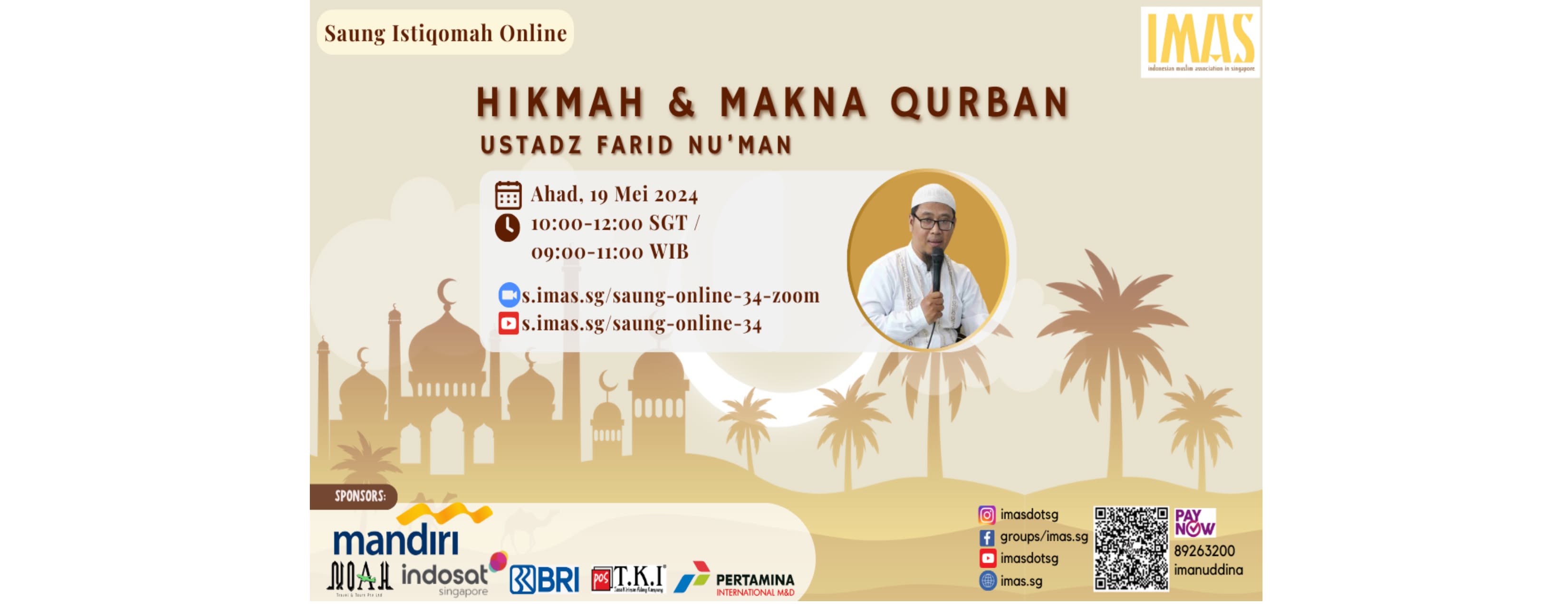 Qurban yang dilakukan oleh Nabi Ibrahim adalah salah satu peristiwa penting dalam sejarah agama Islam. Peristiwa ini mengandung banyak makna dan pelajaran penting. Apa saja makna dan hikamah yang bisa kita ambil dari peristiwa tersebut? Mari kita simak bersama dalam Saung Istiqomah online yang akan diselenggarakan pada:
